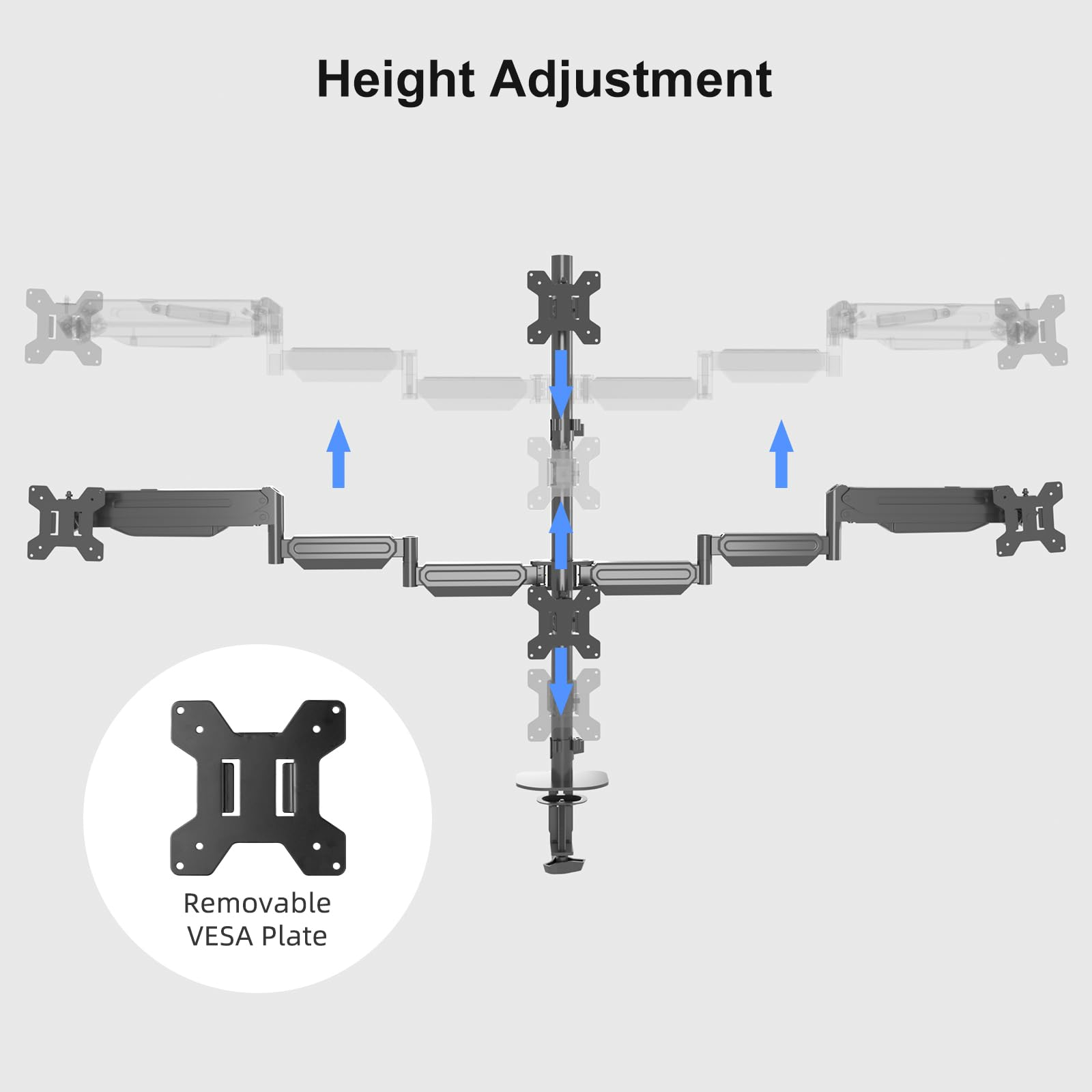 Compatibil cu pana la 4 monitoare de 32” (81 cm) si standard VESA 75x75 / 100x100, acest suport iti ofera control excelent asupra fiecarui ecran.