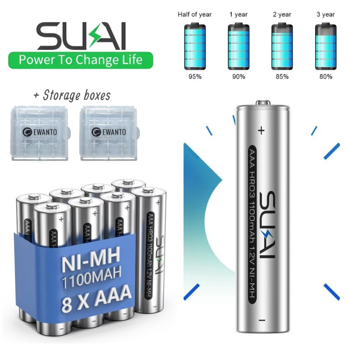 Te-ai saturat sa cumperi mereu baterii noi? Bateriile AAA reincarcabile Sukai® sunt solutia ideala! Acestea ofera calitate superioara, durabilitate si te ajuta sa reduci costurile pe termen lung.