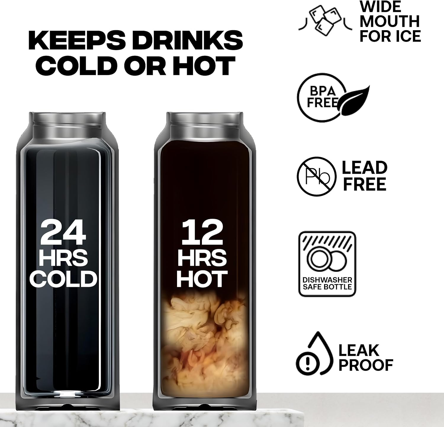 Performanta Termica Excelenta: Designul cu perete dublu asigura mentinerea temperaturii bauturilor, indiferent de conditiile externe 24 / 12 h.
