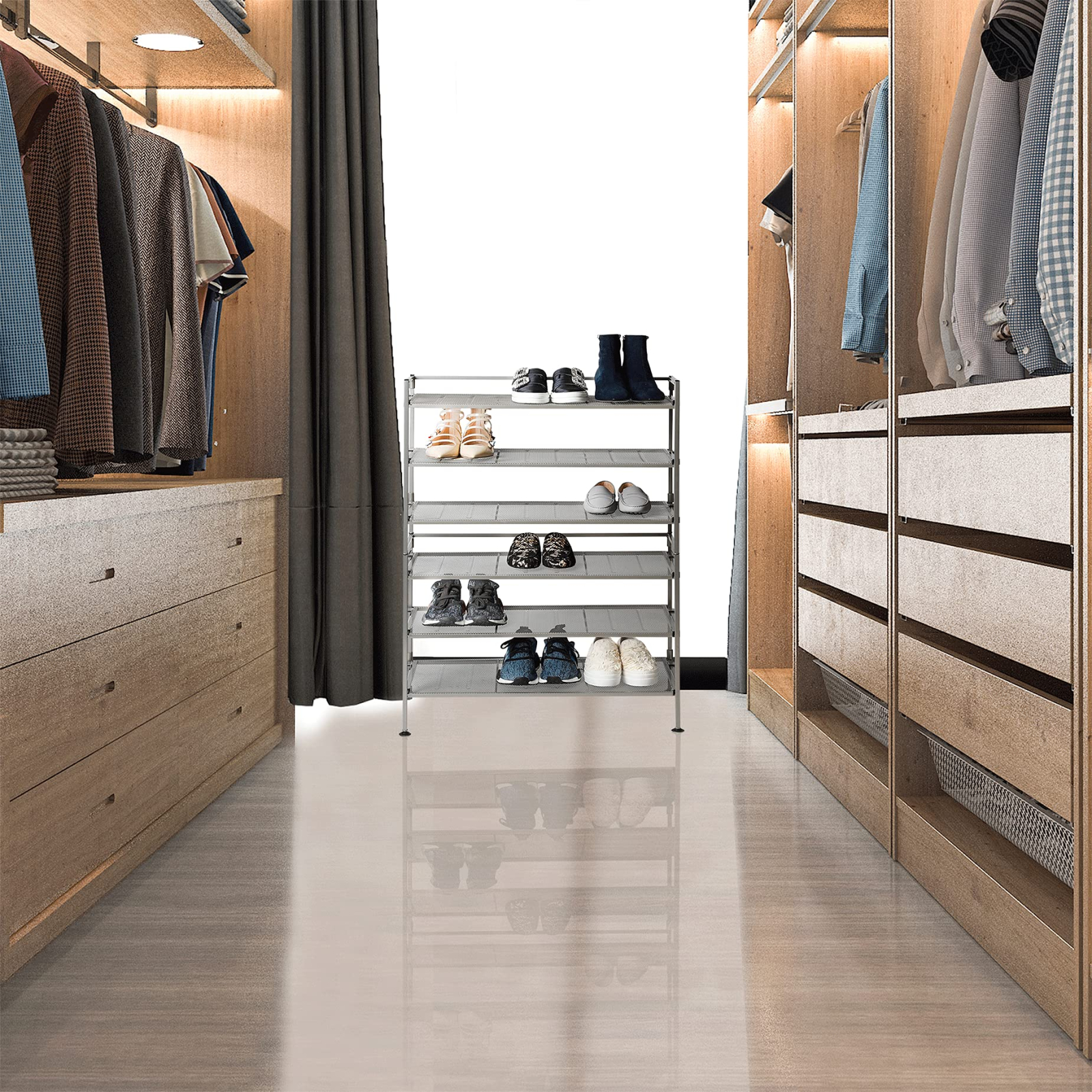 Transforma-ti spatiul cu acest set versatil de 2 suporturi Seville Classics®, ideale pentru organizarea eficienta a incaltamintei sau a altor obiecte personale, atat acasa cat si la birou. Fabricate din otel satinat durabil, aceste suporturi ofera un aspect modern si elegant care se potriveste cu orice stil de decor.