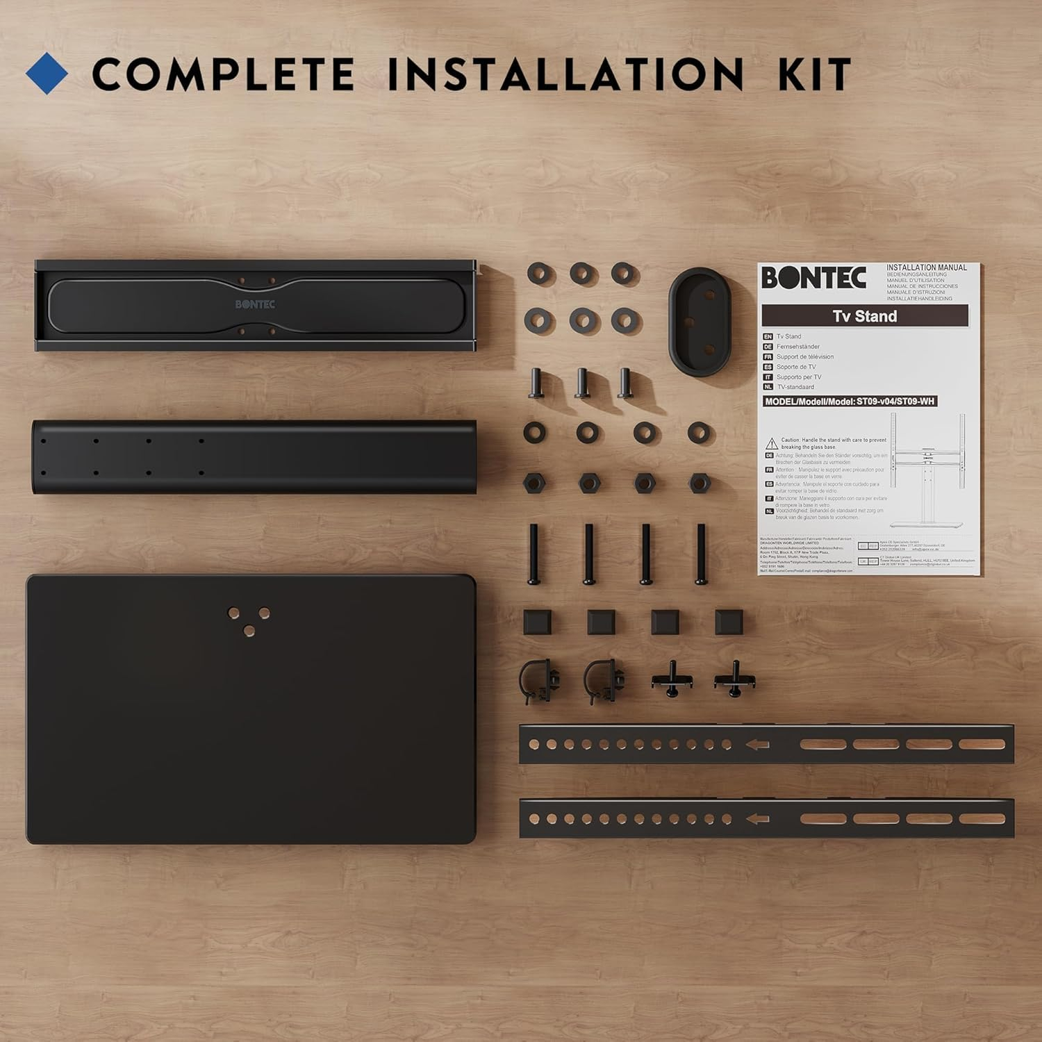 Suportul TV cu stand Bontec® este solutia ideala pentru montarea televizoarelor plate sau curbate cu diagonale intre 24 si 60 inch, fiind perfect pentru amplasarea pe masa, birou sau comoda. Construit din otel rezistent si sticla securizata, ofera stabilitate si un design modern, integrandu-se usor in orice tip de mobilier.